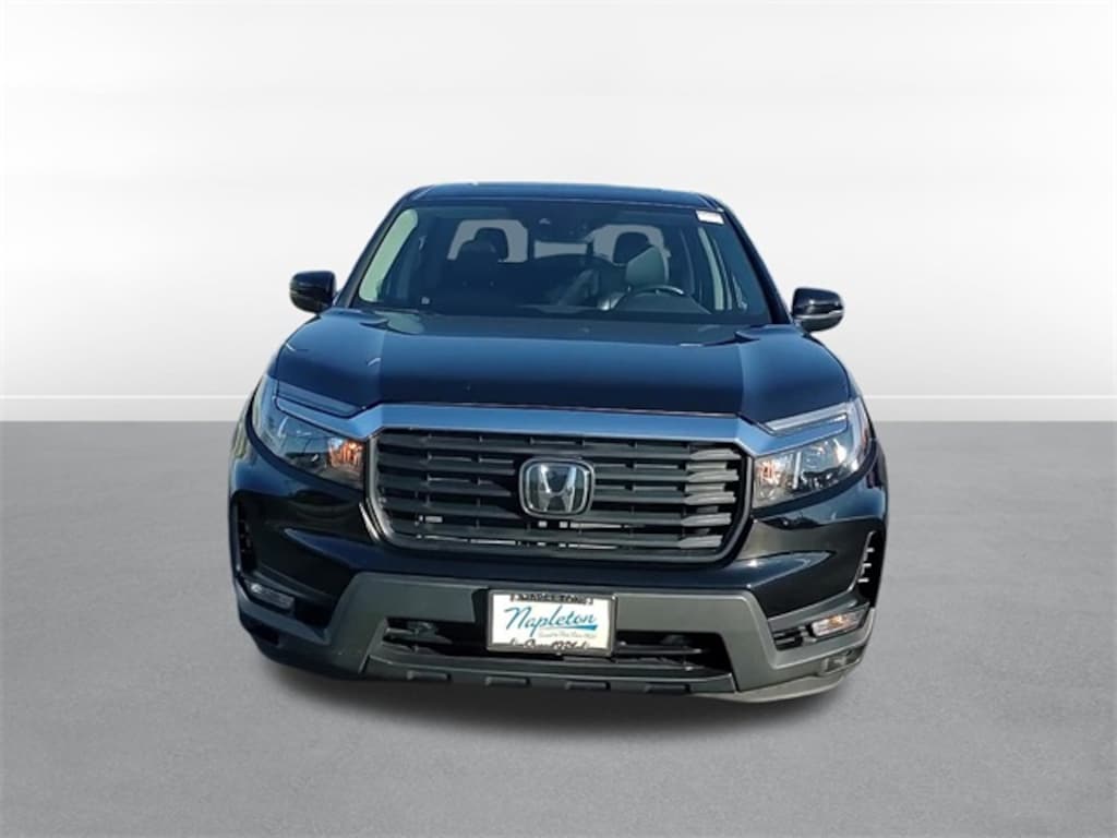 This Ridgeline is well equipped with 4-Wheel Disc Brakes, 4.33 Axle Ratio, 7 Speakers, ABS brakes, Air Conditioning, Alloy wheels, AM/FM radio: SiriusXM, Apple CarPlay/Android Auto, Auto-dimming Rear-View mirror, Automatic temperature control, Blind Spot Information (BSI) System warning, Bluetooth® Hands-Free Link, Brake assist, Bumpers: body-color, Delay-off headlights, Driver door bin, Driver vanity mirror, Driver's Seat Mounted Armrest, Dual front impact airbags, Dual front side impact airbags, Electronic Stability Control, Exterior Parking Camera Rear, Four wheel independent suspension, Front anti-roll bar, Front Bucket Seats, Front dual zone A/C, Front fog lights, Front reading lights, Fully automatic headlights, Garage door transmitter: HomeLink, Heated door mirrors, Heated Front Bucket Seats, Heated front seats, Illuminated entry, Leather Seat Trim, Low tire pressure warning, Memory seat, Occupant sensing airbag, Outside temperature display, Overhead airbag, Overhead console, Panic alarm, Passenger door bin, Passenger seat mounted armrest, Passenger vanity mirror, Power door mirrors, Power driver seat, Power moonroof, Power passenger seat, Power steering, Power windows, Radio data system, Radio: 215-Watt Audio System w/7 Speakers, Rear air conditioning, Rear anti-roll bar, Rear reading lights, Rear seat center armrest, Rear step bumper, Rear window defroster, Remote keyless entry, Security system, SiriusXM, Speed control, Speed-sensing steering, Split folding rear seat, Steering wheel mounted audio controls, Tachometer, Telescoping steering wheel, Tilt steering wheel, Traction control, Trip computer, Turn signal indicator mirrors, Variably intermittent wipers, and Wheels: 18" Exclusive Pewter Gray Alloy.