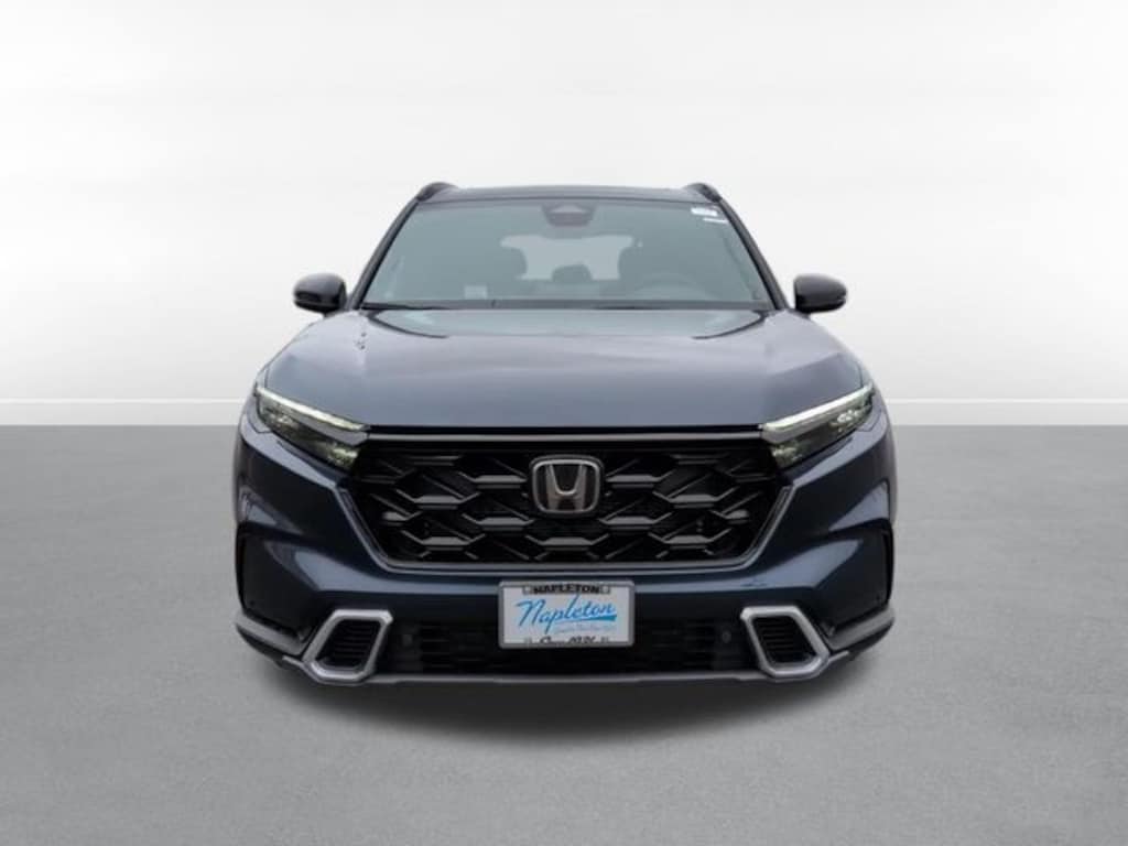 This CR-V Hybrid is well equipped with 12 Speakers, 4-Wheel Disc Brakes, ABS brakes, Adaptive Cruise Control: Adaptive Cruise Control (ACC) with Low-Speed Follow, Air Conditioning, Alloy wheels, AM/FM radio, Apple CarPlay/Android Auto, Auto High-beam Headlights, Auto-dimming Rear-View mirror, Automatic temperature control, Blind Spot Information (BSI) System warning, Bose Premium Sound System, Brake assist, Bumpers: body-color, Compass, Delay-off headlights, Driver door bin, Driver vanity mirror, Dual front impact airbags, Dual front side impact airbags, Electronic Stability Control, Exterior Parking Camera Rear, Four wheel independent suspension, Front anti-roll bar, Front Bucket Seats, Front Center Armrest, Front dual zone A/C, Front reading lights, Fully automatic headlights, Heated door mirrors, Heated Front Bucket Seats, Heated front seats, Heated steering wheel, Illuminated entry, Knee airbag, Leather Seat Trim, Leather Shift Knob, Leather steering wheel, Low tire pressure warning, Memory seat, Navigation system: Google Maps, Occupant sensing airbag, Outside temperature display, Overhead airbag, Overhead console, Panic alarm, Passenger door bin, Passenger vanity mirror, Power door mirrors, Power driver seat, Power Liftgate, Power moonroof, Power passenger seat, Power steering, Power windows, Radio data system, Rain sensing wipers, Rear anti-roll bar, Rear reading lights, Rear seat center armrest, Rear side impact airbag, Rear window defroster, Rear window wiper, Remote keyless entry, Security system, Speed control, Speed-sensing steering, Speed-Sensitive Wipers, Split folding rear seat, Spoiler, Steering wheel mounted audio controls, Telescoping steering wheel, Tilt steering wheel, Traction control, Trip computer, Turn signal indicator mirrors, Variably intermittent wipers, and Wheels: 19" Berlina Black.