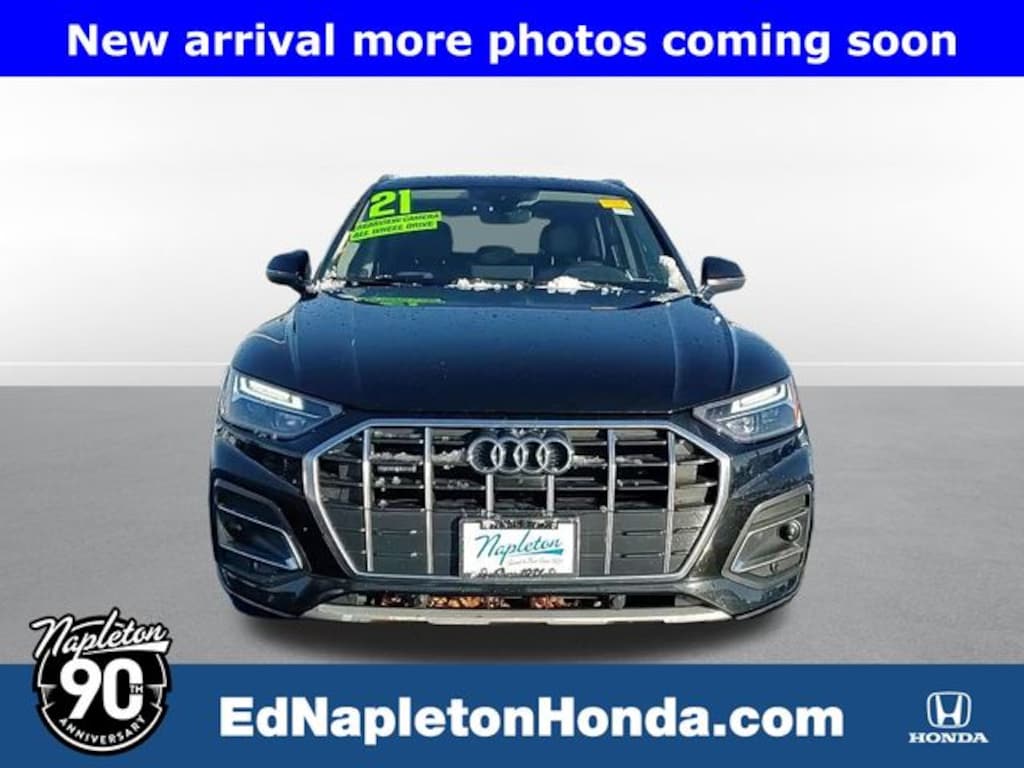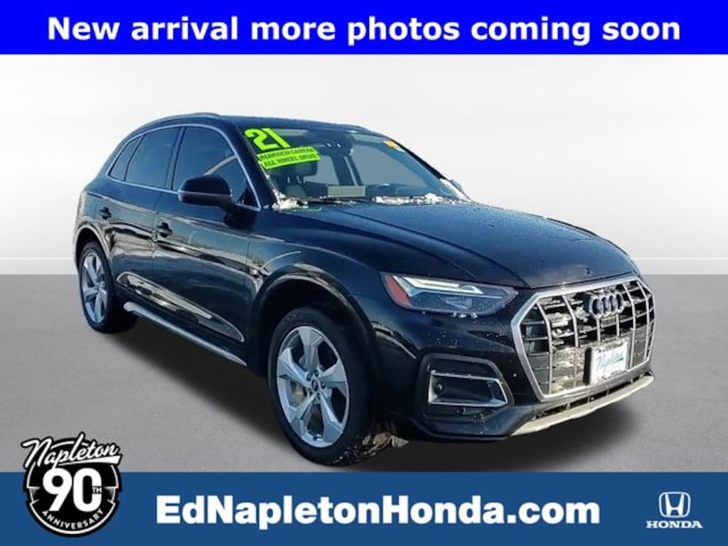 This Q5 is well equipped with Convenience Package (Audi Advanced Key, Auto-Dimming Power Folding Exterior Mirrors, Driver Seat Memory, Heated Steering Wheel, and SiriusXM All Access Service), Navigation Package (Audi Connect PRIME & PLUS and MMI Navigation Plus), Premium Plus Package (Adaptive Cruise Control w/Traffic Jam Assist, Audi Active Lane Assist, Audi Phone Box, Audi Virtual Cockpit Plus, Hands-On Detection Steering Wheel, Leatherette Covered Center Console & Door Armrests, Panoramic Sunroof, Top View Camera System, and Wheels: 19" 5-Double-Arm Design Bi-Color Finish), 10 Speakers, 4-Wheel Disc Brakes, 5.302 Axle Ratio, ABS brakes, Air Conditioning, Alloy wheels, AM/FM radio, Audi Beam-Rings, Auto High-beam Headlights, Auto-dimming Rear-View mirror, Automatic temperature control, Bang & Olufsen Sound System w/3D Sound, Black Privacy Trunk Cover, Brake assist, Bumpers: body-color, Compass, Delay-off headlights, Driver door bin, Driver vanity mirror, Dual front impact airbags, Dual front side impact airbags, Electronic Stability Control, Emergency communication system: Audi connect CARE, Exterior Parking Camera Rear, Four wheel independent suspension, Front anti-roll bar, Front Bucket Seats, Front Center Armrest, Front dual zone A/C, Front fog lights, Front reading lights, Garage door transmitter: HomeLink, Genuine wood console insert, Genuine wood dashboard insert, Genuine wood door panel insert, Heated 8-Way Power Front Bucket Seats, Heated door mirrors, Heated front seats, Illuminated entry, Leather Seating Surfaces, Leather Shift Knob, Low tire pressure warning, Navigation System, Occupant sensing airbag, Outside temperature display, Overhead airbag, Overhead console, Panic alarm, Passenger door bin, Passenger vanity mirror, Power door mirrors, Power driver seat, Power Liftgate, Power passenger seat, Power steering, Power windows, Radio data system, Radio: Audi Sound System, Rain sensing wipers, Rear air conditioning, Rear anti-roll bar, Rear fog lights, Rear reading lights, Rear seat center armrest, Rear window defroster, Rear window wiper, Remote keyless entry, Roof rack, Security system, Speed control, Speed-sensing steering, Speed-Sensitive Wipers, Split folding rear seat, Spoiler, Steering wheel mounted audio controls, Tachometer, Telescoping steering wheel, Tilt steering wheel, Traction control, Trip computer, Turn signal indicator mirrors, Variably intermittent wipers, Wheels: 18" 5-Arm-Star Design, and Wheels: 20" 5-Arm Design.