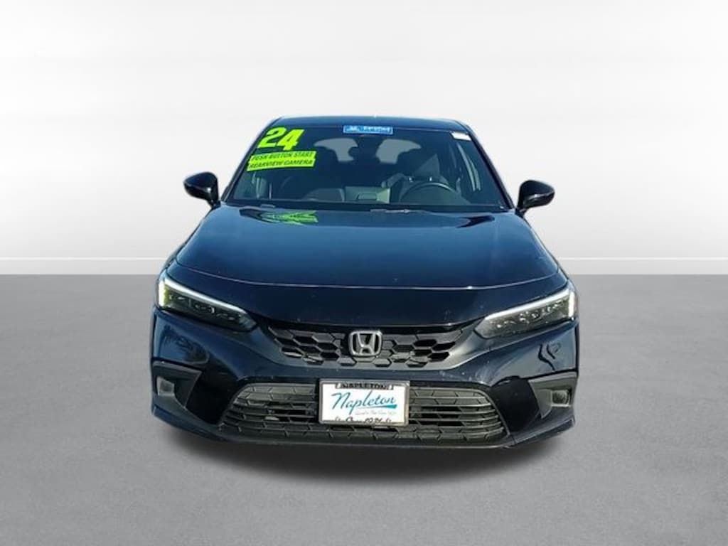 This Civic is well equipped with 18" Alloy Wheels, 4-Wheel Disc Brakes, 8 Speakers, ABS brakes, Adaptive Cruise Control: Adaptive Cruise Control (ACC) with Low-Speed Follow, Air Conditioning, Alloy wheels, AM/FM radio, Apple CarPlay/Android Auto, Auto High-beam Headlights, Automatic temperature control, Brake assist, Bumpers: body-color, Cloth/Leatherette Seating Surfaces, Delay-off headlights, Driver door bin, Driver vanity mirror, Dual front impact airbags, Dual front side impact airbags, Electronic Stability Control, Emergency communication system: HondaLink, Exterior Parking Camera Rear, Four wheel independent suspension, Front anti-roll bar, Front Bucket Seats, Front Center Armrest, Front reading lights, Fully automatic headlights, Illuminated entry, Knee airbag, Lane departure: Lane Keeping Assist System (LKAS) active, Leather Shift Knob, Leather steering wheel, Low tire pressure warning, Occupant sensing airbag, Outside temperature display, Overhead airbag, Panic alarm, Passenger door bin, Passenger vanity mirror, Power door mirrors, Power steering, Power windows, Radio data system, Radio: 180-Watt Audio System, Rear anti-roll bar, Rear side impact airbag, Rear window defroster, Rear window wiper, Remote keyless entry, Security system, Speed control, Speed-sensing steering, Split folding rear seat, Steering wheel mounted audio controls, Tachometer, Telescoping steering wheel, Tilt steering wheel, Traction control, Trip computer, and Voltmeter.
